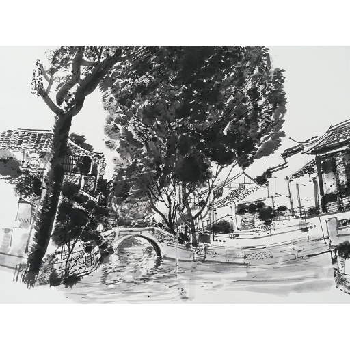 徐勇民-小雨凉意写甪直-45x64cm-2018